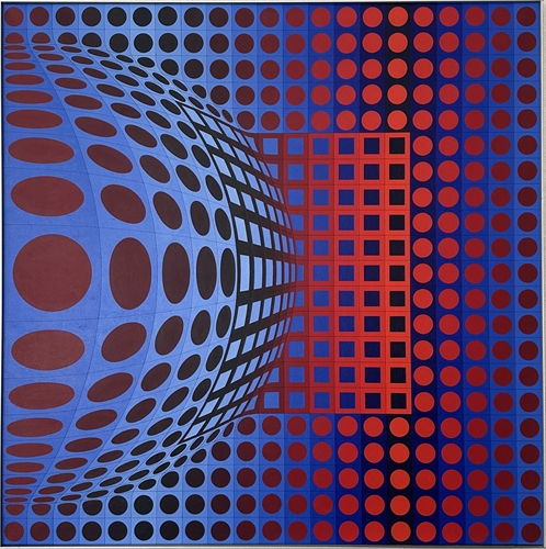 Negli anni Cinquanta, Vasarely elabora quello che lui stesso definisce “alfabeto plastico” — un sistema di forme e colori combinabili all’infinito per creare illusioni ottiche e tensioni dinamiche. Con la serie Folklore Planetario e opere come Sirius II, le sue composizioni geometriche interconnesse producono vibrazioni visive capaci di coinvolgere direttamente lo sguardo dell’osservatore. Vasarely non si limita alla pittura: le sue teorie integrano arte, architettura e ambiente, e nel 1976 fonda la Fondazione Vasarely ad Aix-en-Provence, centro di ricerca e sperimentazione artistica. Dopo decenni di mostre internazionali e imprese progettuali, muore a Parigi nel 1997 lasciando un’eredità visuale che ha ridefinito i confini tra forma e percezione.